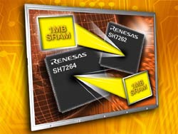 Les SH7264 et SH7262 ont été conçus pour les applications GUI et de visualisation et offrent jusqu’à 1 Mo de SRAM embarquée. Ceux-ci permettent d’implémenter des capacités d’affichage vidéo sans avoir besoin d’une RAM externe, induisant ainsi des réductions significatives en matière de coûts et de consommation d’énergie sur l’ensemble du système.