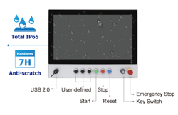 ABOS est un Panel PC convivial doté d’un écran tactile et de touches de fonctions. Avec 3 boutons par défaut, pour démarrer, arrêter et réinitialiser, il offre une réponse rapide et efficace ainsi qu’un fonctionnement plus direct. Afin de s’adapter aux exigences des clients, il dispose également de 3 boutons de fonctions définissables pour mettre en œuvre le processus défini par l’utilisateur. La conception pratique s’étend à l’équipement d’un bouton d’arrêt d’urgence et d’un interrupteur à clé. Ainsi en cas d’alerte, le traitement peut être stoppé immédiatement. L’interrupteur à clé permet lui une sécurisation de l’accès.