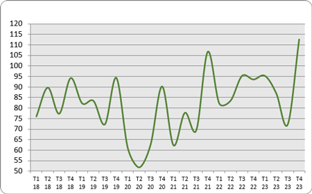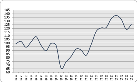 L’indice a suivi une pente de forte croissance au cours des deux dernières années et il se situe 28% au-dessus du T4 2021.