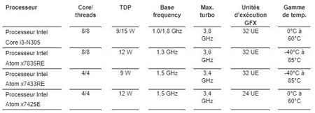 Les modules SMARC conga-SA8 de congatec sont disponibles avec le processeur Intel Core i3 N305 et trois processeurs Intel Atom différents avec jusqu’à huit cœurs, jusqu’à 16 Go de mémoire LPDDR5 à 4800MT/s et jusqu’à 256 Go de mémoire flash eMMC 5.1. Le graphique intégré Intel UHD Gen 12 avec jusqu’à 32 unités d’exécution prend en charge jusqu’à trois écrans 4k indépendants. La gamme d’interfaces haut débit comprend Ethernet 2,5 Gbps, USB 3.2 Gen 2, PCIe Gen 3, SATA Gen 3, et diverses E/S intégrées telles que i2C, SPI, UART et GPIO. Le module prend également en charge les systèmes d’exploitation suivants : Windows 11 IoT Enterprise, Windows 10 IoT Enterprise 2021 LTSC et Linux LTS.