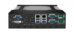 Processeur Intel Core i9/i7/i5/i3 (14eme génération, RPL-S Refresh / RPL-S / ADL-S), connecteur MIL-DTL-38999 robuste pour 6 USB 2.0, 4 GigE RJ45, 4 COM RS232 /422/ 485, 1 DVI-I, 1 Key M, 2 plateaux SSD 2,5" en accès frontal, 12-50V DC, Fanless, gamme de température étendue de -40 à 65 °C.