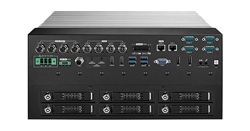 Processeur Intel Core i9/i7/i5/i3 (14eme génération, RPL-S Refresh / RPL-S / ADL-S), entrée 16-160V DC, protection contre les surtensions 500V, 8 ports Lan 2.5 GigE M12 codé X dont 4 ports IEEE 802.3at PoE+, 1 port Lan 2,5 GigE, 1 port Lan GigE, 6 tiroirs extractibles SSD/HDD de 7 à 15 mm de hauteur, UPS pris en charge