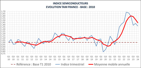 C’est un recul comparable à celui publié par le WSTS pour l’ensemble du marché européen. En glissement annuel, la baisse du marché français est de 18%.