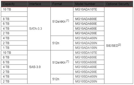 Conçue pour répondre aux exigences croissantes des applications des solutions de serveur et de stockage d’entreprise, la série MG10-D offre un nouveau niveau de performances. Par exemple, par rapport au modèle précédent, le nouveau MG10ADA10TE de 10 To offre une vitesse de transfert maximale soutenue d’environ 13 % supérieure, soit 268 Mo/s. De plus, il double la taille du tampon de cache à 512 Mo. Enfin, il réduit également la consommation d’énergie en mode veille actif d’environ 21 %, à 5,74 W. La nouvelle série MG10-D est conçue pour offrir un coût total de possession (TCO) amélioré et elle s’intègre parfaitement à une grande variété d’applications critiques pour l’entreprise, telles que la messagerie électronique, l’analyse des données, la conservation des données et la surveillance.