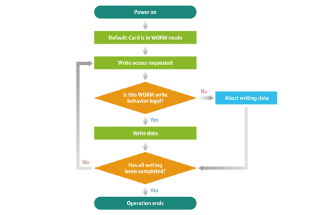Dans une mémoire Flash NAND standard, il existe des commandes que le firmware peut envoyer à la mémoire Flash. Ces commandes peuvent inclure l’écriture de données, l’effacement de données et diverses autres fonctions. Dans les disques WORM, le firmware est personnalisé pour empêcher l’envoi de commandes d’effacement : le firmware est informé que ces commandes sont illégales. Effacer ou modifier des données sur un disque WORM est donc impossible.
