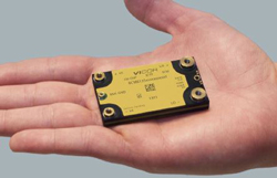 Figure 3 : La réduction de la taille et du poids du réseau de distribution d’alimentation sont des facteurs essentiels pour la nouvelle génération de plateformes de véhicules électriques. Par exemple, les 2,5 kW de puissance du module BCM6135 de Vicor tiennent dans le creux de la main