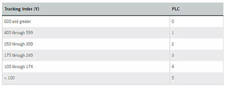Outre les propriétés thermiques, il est également important d’examiner les caractéristiques électriques des matières telles que la valeur Dk, la constante diélectrique. Il est particulièrement important de tenir compte de ces caractéristiques si vous avez une conception avec des signaux à grande vitesse qui nécessite des pistes à impédance contrôlée. Lorsque vous avez défini une certaine valeur d’impédance pour vos paires simples ou différentielles, il est conseillé d’indiquer la valeur Dk. Lorsque vous avez indiqué la valeur Dk, cela permet au fabricant de circuits imprimés de simuler le résultat de la valeur d’impédance avec l’empilement donné. Enfin, nous examinons la valeur CTI. CTI est l’abréviation de Comparative Tracking Index (coefficient de résistance au courant de cheminement) et mesure les propriétés de décharge électrique d’une matière. Il est généralement présenté sous la forme d’une unité PLC qui est une échelle simplifiée de plages de tension, comme le montre le tableau ci-dessous.