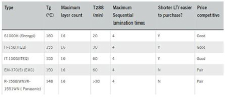 Prenons un exemple pour sélectionner la matière : Sélection d’une matière Mid-Tg à nombre de couches élevé avec une finition sans plomb.