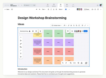 Il est possible de démarrer et planifier des réunions à partir d’un Zoom Doc pour se connecter avec ses collègues et rationaliser rapidement les flux de travail. On peut aussi partager des documents à travers Zoom Workplace via Zoom Team Chat ou Zoom Mail, ou inviter des collègues à collaborer en direct dans Zoom Meetings pour rationaliser l’édition.