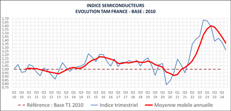 Les causes de ce ralentissement conjoncturel sont multiples et sont bien identifiées par les industriels du secteur. Tout d’abord, la correction des stocks n’est pas encore finalisée contrairement à ce qui était espéré en début d’année. Cela concerne notamment les ventes à la distribution qui ont battu des records en 2022 et 2023, ainsi que le vaste segment industriel, lequel constitue d’ailleurs la part majoritaire des ventes des distributeurs au client final. Le segment automobile est quant à lui touché par la baisse non anticipée des ventes de véhicules 100% électriques avec un report sur les véhicules hybrides et thermiques où le contenu en semiconducteurs est moindre. La forte concurrence chinoise ne fait qu’accroître la pression sur l’industrie automobile européenne avec des répercussions directes sur toute la filière électronique. Le secteur de la défense fait face à une forte demande mais la production ne suit pas toujours, ce qui peut provoquer des à-coups dans la demande de composants.