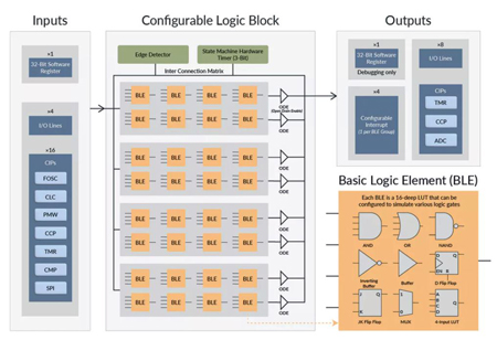 L’une des exigences clés des concepteurs de systèmes embarqués (soit embedded) modernes est d’obtenir un comportement du circuit prévisible dans le temps. En pratique, cela revient à raccourcir le temps de réponse aux changements survenant dans les processus gérés : réponse immédiate aux données d’entrée des capteurs, des ports de communication ou de l’interface utilisateur. Cet effet peut être obtenu en augmentant la puissance de calcul des systèmes, mais il s’agit d’une méthode sous-optimale car elle entraîne un gaspillage de grandes quantités d’énergie. Pour éviter de programmer les processus de base, Microchip utilise des périphériques fonctionnant indépendamment du coeur (Core Independent Peripherals) dans ses microcontrôleurs. Une nouveauté dans cette technologie est un système de portes logiques programmables (Configurable Logic Block), qui a été intégré dans la nouvelle famille de 8 bits des microcontrôleurs de ce fabricant, systèmes PIC16F131xx.