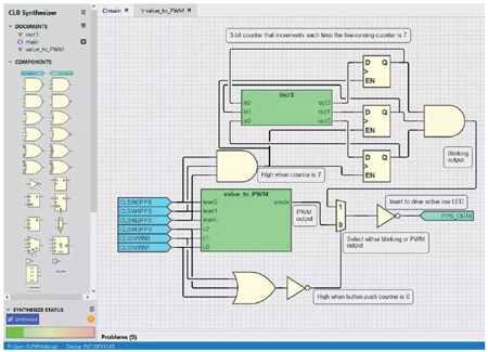 Tout d’abord, le processus de configuration du CLB est effectué à l’aide d’un logiciel dédié appelé CLB Synthesizer, qui est basé sur une interface graphique. Son utilisation revient à préparer un schéma fonctionnel, grâce auquel le programme reste lisible même pour des personnes peu familiarisées avec toutes les fonctionnalités de l’environnement.