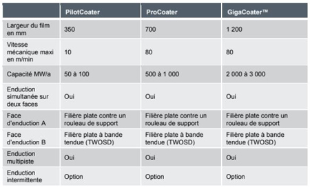 Grâce au GigaCoaterTM, Dürr élargit sa gamme de machines d’enduction simultanée sur deux faces, qui comprenait auparavant le PilotCoater et le ProCoater. Le PilotCoater peut traiter des films jusqu’à 350 mm de large à des vitesses d’enduction allant jusqu’à 10 mètres/minute, ce qui en fait un outil idéal pour la production, ainsi que pour le développement continu des processus et des produits. Le ProCoater, une ligne d’enduction de plus grande taille, permet des largeurs de bande de 350 à 700 mm et des vitesses d’enduction atteignant 50 m/min, ce qui contribue à la production à grande échelle de batteries lithium- ion. Les deux produits sont d’ores et déjà utilisés par les principaux fabricants de batteries dans le monde.