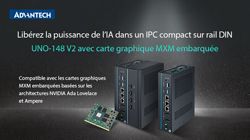 Advantech, leader mondial des solutions informatiques industrielles en périphérie, est heureux d’annoncer le lancement du modèle UNO-148 V2, un contrôleur d’automation sur rail DIN. Équipé des derniers processeurs Intel® Core™ 13e génération et d’une conception innovante qui s’intègre à son kit d’extension second-stack pour prendre en charge les cartes graphiques MXM embarquées basées sur les architectures NVIDIA Ada Lovelace et Ampere, ce produit est en passe de révolutionner les applications de contrôle et d’automatisation en temps réel dans divers secteurs axés sur l’IA, en permettant l’exploitation de l’IA en périphérie.