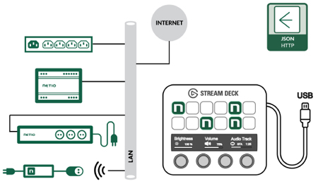 L’AN67 montre comment contrôler la/les sortie(s) d’alimentation sur les PDU NETIO via le logiciel Bitfocus Companion en connexion avec le lecteur STREAM universel connecté au port USB de l’ordinateur.