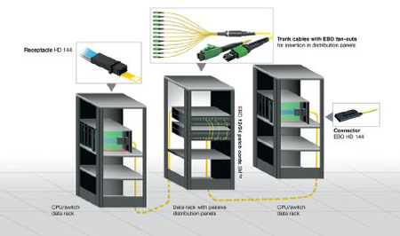 Dans les centres de données, le connecteur EBO constitue une véritable alternative à tous les types de connecteurs multifibres et aux connecteurs « classiques » en raison de sa facilité d’installation, de sa grande fiabilité opérationnelle et, en particulier, de sa disponibilité en tant que connecteur monomode.
