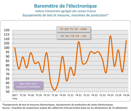 Le Collège Equipements & Services et Test & Mesures d’ACSIEL vient de finaliser le baromètre du 4e trimestre 2024.