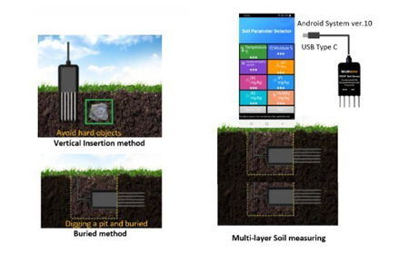 Options de connectivité intelligentes : RS485 Modbus RTU pour une intégration transparente avec les systèmes de gestion agricole et une version USB-C pour une analyse mobile via une application Android.