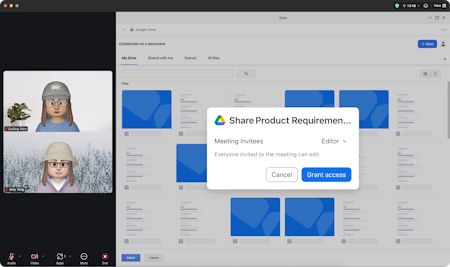 Avec les applications Microsoft 365 et Google Drive pour Zoom, il est possible de connecter un compte Microsoft ou Google afin d’accéder aux fichiers Word, Excel et PowerPoint ou Docs, Sheets et Slides pour les partager en temps réel. Les utilisateurs peuvent également créer de nouveaux fichiers directement depuis la réunion.
