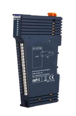 Module de sortie relais normalement ouvert 8 canaux 1 A/30 VCC/30 W avec 8 voyants LED. Il présente une faible résistance à l’état passant (¡Ü 100 m¦¸), une isolation entre les canaux, des diodes TVS bidirectionnelles intégrées, un circuit RC interne et peut gérer des charges résistives et inductives. Ce module est conçu pour une tension de 24V DC. Pour les charges inductives, susceptibles de provoquer un blocage dû à l’influence de la force électromotrice inverse sur les contacts du relais en présence d’alimentation DC, le circuit imprimé du module intègre des diodes de roue libre pour libérer l’énergie des charges inductives. Ainsi, le CT-2738 gère avec fiabilité les charges résistives et inductives. Il est important de noter que ce module a une capacité de charge maximale de 1 A pour un seul contact et ne peut pas être connecté au courant alternatif (CA).