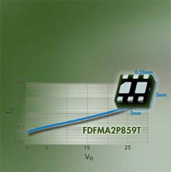 Le FDFMA2P859T fournit une excellente dissipation de puissance et une faible perte de conduction par rapport aux MOSFET standards, tout en diminuant de 30% la taille du boîtier MicroFET par rapport au boîtier standard de 0,8 mm. Avec un boîtier de 0,55 mm, ce MOSFET convient parfaitement aux projets de taille réduite comme par exemple les tout nouveaux téléphones portables, lecteurs multimédia et appareils médicaux.