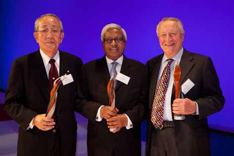 Signature d`image : Kazuo Inamori, Fazle Hasan Abed et Bert Twaalfhoven (de gauche à droite)