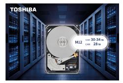 Toshiba Electronics Europe GmbH (Toshiba) lance la série M12 de disques durs nearline 3,5 pouces[1] destinés aux fournisseurs de services hyperscale et cloud exploitant des centres de données à grande echelle. Cette nouvelle série utilise la technologie d’enregistrement magnétique à chevauchement (SMR) pour offrir des capacités de stockage[2] allant de 30 à 34 To[3]. Les premiers samples sont d’ores et déjà disponibles et Toshiba prévoit également de lancer, au troisième trimestre 2026, les disques M12 utilisant l’enregistrement magnétique conventionnel (CMR) pour des capacités allant jusqu’à 28 To.