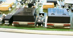 Généralement on admet que la cause de la destruction des PCB provient des soudures qui deviennent poreuses avec le temps. C’est exact, mais le processus est un peu plus compliqué. Une soudure est un quasi court-circuit. Si sa résistance est à peu près nulle, selon la bonne vieille loi d’Ohm, elle ne chauffe pas. Si sa résistance augmente, elle va rapidement chauffer, ses caractéristiques intrinsèques vont évoluer, entraînant avant sa fusion la modification locale des caractéristiques du laminé. Le matériau FR-4 est un composite de résine époxy renforcé de fibre de verre dont la température de transition vitreuse (TG ou Glass Transition Température) du FR (Flamme Résistant) standard est assez basse, de l’ordre de 115°C à 200°C pour les HiTG selon les méthodes de fabrication et les résines utilisées. Et à ces températures, le laminé possède la fâcheuse caractéristique de perdre ses caractéristiques isolantes.