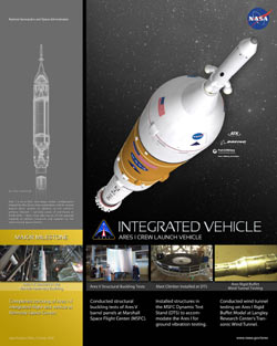 La fusée Ares I, un lanceur de module habité développé pour le programme Constellation de la NASA, est le cœur d’un système de transport spatial fiable et économique qui transportera des équipages vers la lune et au-delà dans le système solaire. Ares V est le lanceur de module cargo de la NASA, considéré comme le lanceur lourd de la nouvelle génération de la flotte spatiale des Etats-Unis ; il servira comme vaisseau principal de la NASA pour un lancement sûr et fiable du matériel lourd dans l’espace.