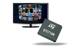 Le STi7108 est capable de décoder des fichiers vidéo aux formats standard de l’industrie, tels que H.264, MPEG2, VC-1 ou WMV9 (Internet video) et MPEG4 Part 2, jusqu’à des résolutions haute définition de 1080p 50/60 en même temps que des formats mosaïque ou d’incrustation d’image (Picture in Picture) de 1080i/720p. Ce jeu de circuits dispose d’options d’interface mémoire flexibles avec une dualité 32/16 bits LMI DDR2/DDR3 à 1066 MHz. Il dispose d’entrées acceptant jusqu’à six flux et assure la diffusion au format 3DTV HD Full Motion sur port HDMI 1.3 avec protection anti-copie HDCP. La prise en charge du partage de fichiers, conformément à la spécification de l’Alliance DLNA (Digital Living Network Alliance) permettra également de l’utiliser dans des lecteurs multimédias HD et Blu-ray de nouvelle génération.