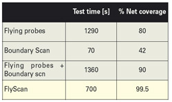 Ces exemples sont les plus indicatifs des avantages de FlyScan ; bien d’autres situations de test nous indiquent des avantages considérables que cette intégration des deux techniques permet, dans des environnements de production ou dans des ateliers de réparation pour des cartes de technologie complexe. Une analyse même rapide, comme dans le contexte de cet article, permet de voir la profonde différence entre FlyScan et certaines « encapsulations » d’outils JTAG dans un testeur générique à sondes mobiles. FlyScan se base sur un dialogue étroit et profond entre deux logiciels, avec une interaction constante et efficace pendant la génération du programme de test, pendant l’exécution, pendant le diagnostic des pannes. Tout cela, avec un flux constant d’échanges de données, optimisé pour réduire le temps de programmation et le temps de test, et pour augmenter le taux de couverture et la précision du diagnostic. Les résultats sont concrètement supérieurs à toutes approches comportant deux stations séparées à sondes mobiles et ensuite avec test Boundary Scan, ou avec une seule station à sondes mobiles qui utilise une liaison « bas niveau » avec un instrument Boundary Scan.