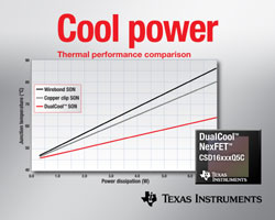 Texas Instruments Incorporated (TI) lance la première famille de MOSFET de puissance à encombrement standard à destination des applications DC/DC à courants élevés, qui dissipe la chaleur par la face supérieure du boîtier. Les MOSFET de puissance DualCool™ NexFET™ réduisent la taille de l’équipement final tout en fournissant une augmentation de courant pouvant aller jusqu’à 50% à travers le MOSFET, ce qui permet d’améliorer le bilan thermique par rapport aux autres boîtiers à encombrement standard. Consultez la page Web : http://www.ti.com/dualcool-prfr.