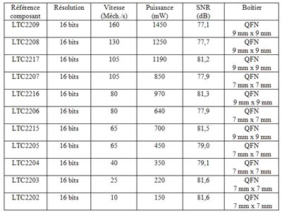 En plus de ces CAN, à faible niveau de bruit, annoncés aujourd’hui, Linear Technology présente actuellement, une famille de CAN très performants, échantillonnant de 10 Méch./s à 105 Méch./s, avec des sorties CMOS, en boîtier QFN 7 mm x 7 mm. Tous les CAN rapides de Linear possèdent les caractéristiques en alternatif de pointe de l’industrie, une consommation extrêmement faible et une compatibilité de brochage, ce qui facilite la migration 10 bits vers 12 bits ou 14 bits, à plusieurs vitesses d’échantillonnage. Tous ces CAN peuvent échantillonner à partir de 1 Méch./s jusqu’à la vitesse d’échantillonnage maximum spécifiée.