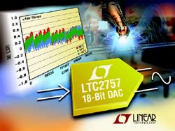 Linear Technology Corporation présente le LTC2757, le premier convertisseur numérique-analogique 18 bits (CNA) sur le marché industriel à présenter des caractéristiques en continu de précision INL de ± 1 LSB (max.) et DNL de ± 1 LSB (max).