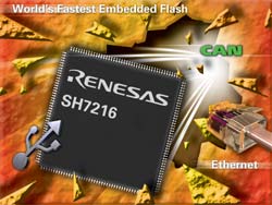 En plus des fonctions typiques de communication série, ce microcontrôleur possède aussi un jeu varié d’interfaces telles qu’Ethernet, CAN et USB 2.0. Ces caractéristiques évitent de faire appel à des contrôleurs de communication externes dans le cas d’applications comme l’équipement d’automatisation de bureaux et autres types d’applications de communication industrielles. Elles permettent également au SH7216 de répondre à des applications nécessitant de la connectivité d’usage général.