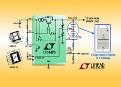 Linear Technology Corporation introduit le LTC4425, le dernier produit de la famille des chargeurs pour deux supercondensateurs, afin de répondre à la demande de crêtes d’énergie, des sauvegardes de données, des batteries en voie d’extinction des applications portables de stockage de données. Ce circuit utilise une architecture linéaire CC-CV avec limitation thermique pour la charge de deux supercondensateurs en série, pour une tension de sortie programmable à partir d’une batterie Li-ion/polymère, un port USB, ou autre alimentation de 2,7 V à 5,5 V limitée en intensité.