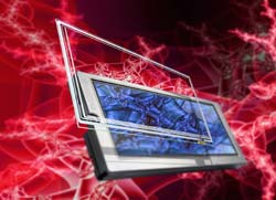 Le groupe technologique japonais Kyocera, leader dans le domaine des produits en céramique fine et fabricant d’afficheurs à cristaux liquides (LCD) industriels, élargit actuellement sa gamme avec une ligne de dalles tactiles. Des afficheurs réagissant à l’effleurement sont dès à présent disponibles dans des dimensions allant jusqu’à 19 pouces. Leur nouvelle technologie verre/verre offre une fiabilité accrue et une meilleure lisibilité que les systèmes faisant appel à la technologie film/verre.