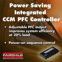 Afin de répondre aux normes ENERGY STAR® et diminuer leur empreinte carbonique, les équipes de conception électronique de puissance poursuivent leurs efforts d’efficacité vers les 100%, apportant une plus haute efficacité système aux PC , serveurs, alimentations industrielles et électronique grand public. Fairchild Semiconductor (NYSE :FCS) s’est appuyée sur son expertise en puissance pour développer un contrôleur CCM PFC pour les alimentations entre 300W et 2 kW pour une meilleure efficacité système, une meilleure puissance et un faible THD. Grâce à ce haut niveau d’intégration, ce contrôleur CCM PFC élimine 54 circuits externes.