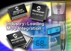 Microchip annonce l’expansion de sa gamme de microcontrôleurs (MCU) à cœur milieu de gamme enhanced 8 bits (PIC16F1xxx), avec plus de mémoire et de broches, ainsi que la technologie nanoWatt XLP permettant une consommation de courant actif inégalée sur le marché. Les MCU PIC16F19XX sont dotés d’une large gamme de périphériques, notamment un module de gestion de touches tactiles capacitives mTouch™, un controleur LCD, plusieurs périphériques de communication et plus de canaux de modulateur de largeur d’impulsions (MLI) avec temporisateurs indépendants. Les nouveaux MCU fournissent de meilleures performance pour toute une palette d’applications, notamment dans les secteurs grand public, de l’industrie, du médical et de l’automobile.