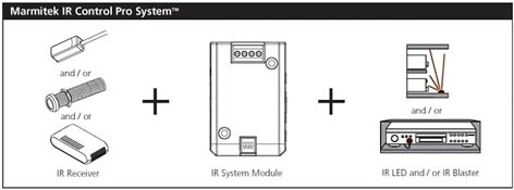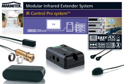 Le « IR Control Pro System™ » est un système professionnel modulaire rendant la rallonge infrarouge invisible puisque le module de système IR peut être placé hors de vue. Le client peut choisir entre les récepteurs incorporés, en applique ou de table, avec technologie à large bande ou à bande double. Que ce soit pour activer 1 ou 8 sources A/V, avec LEDs ou blasters clignotants ou non clignotants, pour chaque situation le IR Control Pro System offre une solution adéquate. Par un indicateur de choix clair il est maintenant plus simple que jamais de commander une solution sur mesure.