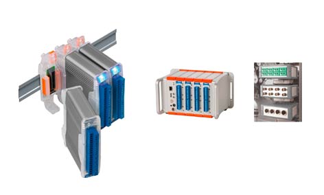 • Q-bloxx conditionneur modulaire très compact 27mm de large, équipé d’entrées/sorties analogiques et logiques universelles ou dédiées (TC, tension jusqu’à 1200V, jauges, IEPE,…), avec une rapidité de 100 KHz/voie et une haute résolution de 24 bits.