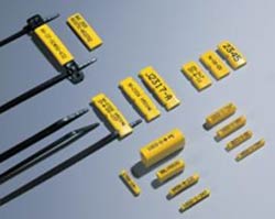 Enfin les manchons PK, pour repérage de câbles sur tout diamètre, peuvent être marqués sur une ou deux lignes, de 2 à 10 caractères par ligne en standard. La fixation se fait à l’aide de colliers, soit directement sur le câble, soit avec un support Partex.