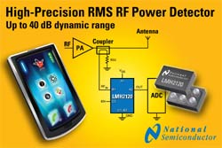 Un nouveau détecteur linéaire de puissance radio efficace (RMS) proposé par National Semiconductor Corp. (NYSE : NSM) offre la meilleure précision du marché, et jusqu’à 40 dB de dynamique. Le PowerWise® LMH2120 étend la couverture sans-fil et prolonge la durée de vie des batteries de téléphones de troisième (3G) et de quatrième génération (4G).