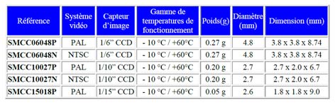 Les micros cameras sont disponibles en format video PAL et NTSC et uniquement PAL pour la caméra 1/15”