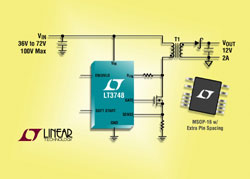 Le LT3748H est disponible en un petit boîtier MSOP-16, dont quatre broches ont été supprimées pour un espacement haute tension supplémentaire.