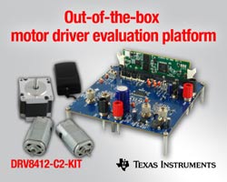 Texas Instruments Incorporated (TI) (NYSE : TXN) lance la première plateforme d’évaluation évolutive issue de sa nouvelle gamme dédiée aux moteurs de rotation. Le kit d’évaluation DRV8412 (DRV8412-C2-KIT) inclut tous les éléments matériels et logiciels requis pour entraîner deux moteurs DC à balais ou un moteur pas à pas. Cette solution robuste, hautement intégrée et prête à l’emploi réduit les temps de développement des moteurs DC à balais et des moteurs pas à pas supportant un courant de 6A en continu et 12A pic à 50V. Les applications sont nombreuses : pompes médicales, systèmes d’ouverture de portail, éclairage de plateau, outils de fabrication textile, solutions robotiques industrielles et grand public, etc. Pour plus d’informations ou pour passer commande, visitez la page http://www.ti.com/drv8412-c2-kit-preu.