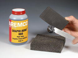 GRAPHI-BOND 669 est un adhésif haute température mono composant à base de graphite utilisée pour coller, remplir et réparer des pièces en carbone et graphite en atmosphère oxydante et réductrice jusqu’à 1371°C.
