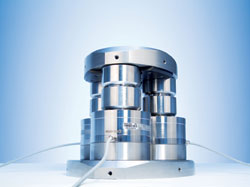 Un tel système Build-Up peut être obtenu à partir du capteur de force C18, en raison de la taille compacte de ce dernier. La précision obtenue est de classe 00 selon ISO 376 et elle est assurée grâce à la sélection d’excellents exemplaires. Un boîtier de raccordement permettant le branchement en parallèle des signaux de sortie des trois capteurs est compris dans la livraison.