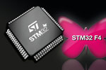 Grâce à son jeu d’instructions de traitement du signal numérique (DSP) à un seul cycle, le microcontrôleur STM32 F4 ouvre la voie au marché des contrôleurs de signal numériques (DSC) qui exigent une importante capacité de calcul et des instructions DSP pour des applications aussi exigeantes que les commandes de moteur de haut de gamme, les appareils médicaux et la sécurité. En assurant une mise à niveau simple entièrement compatible sur le double plan du logiciel et du brochage de la série STM32 F2 associée à une mémoire SRAM plus importante, à des performances accrues et à un solide jeu de périphériques, la série F4 permettra aux clients qui utilisent les microcontrôleurs de la série STM32 F2 et ont besoin davantage de mémoire, de performances 1 Avec des scores de 363 Coremark et 210 DMIPS 2 45% de part de marché mondiale en unités (période cumulée de 2007 à T1 2011 selon les livraisons d’unités Cortex-M d’ARM).