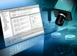 En règle générale, dans le process d’emballage, les différents produits arrivent dans le désordre dans le module de manutention. Les systèmes de vision industrielle sont utilisés pour déterminer la position de chaque produit sur l’unité d’alimentation. Avec le Simatic Visionscape, Siemens propose un système de traitement d’images pouvant être aisément relié à la commande Simotion via une connexion Ethernet. Le système de visualisation envoie au Simotion des télégrammes avec les données des produits identifiés et délivre, en même temps, ces données au programme utilisateur.